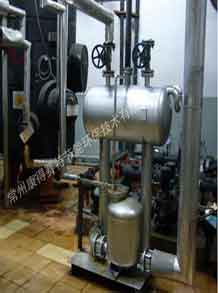 通常冷凝水可以通過疏水閥很方便地排出設備,進入冷凝水排放系統,如果冷凝水已經被污染,則應該直接排放掉;如果沒有污染,可以將其回收到鍋爐給水箱以利用冷凝水含有的熱量,這樣同時也節省了水和水處理的費用。有時用汽設備內部會產生真空,這樣會影響冷凝水的排出,從而影響蒸汽換熱效率,這時冷凝水就需要用泵壓出去。